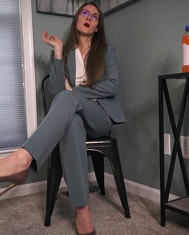 She keeps telling you to get your mind out of the gutter, she’s not that sort of boss, and she begins unbuttoning her blouse and removes it. Patting her soft belly, and she leans in and burps! Blowing it in your face!