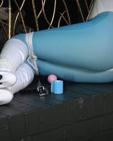 She wants you to tie her up! And who are you to deny her what she asks for. You tie the ropes at her ankles, above the knee, give her a nice tight crotchrope that pulls her spandex nice and snug and you watch her wiggle and get situated as she changes her gag from the ball gag to mouth stuffing with vet wrap. But before she does that she teases you, asking for MORE rope! You love watching her stuff her mouth and wrap the blue vet wrap around her head and you gladly grab more rope and give her what she wants!