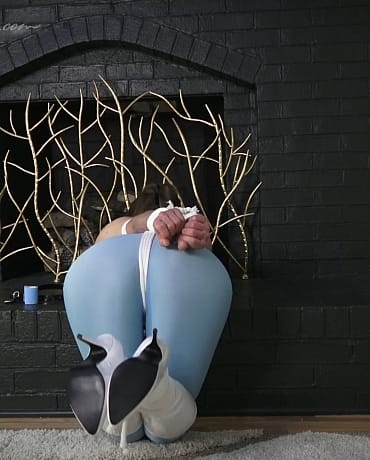 You add wrist, and elbow rope and let her shimmy around on the fireplace hearth, wiggling her ass at you, before you decide she needs to let down her hair and relax for a while on the floor in a nice tight hogtie!
