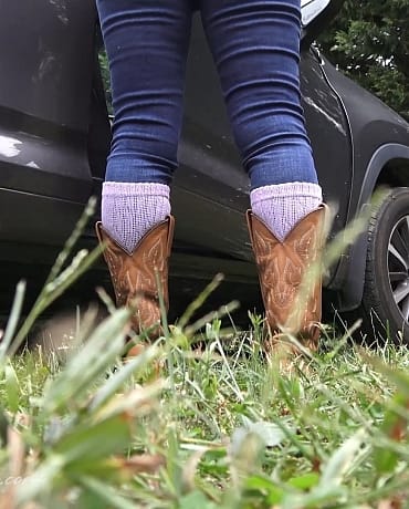 Madalynn and her friend AJ have finished all their farm chores and are resting their tired feet for a minute while they figure out what they're going to have for lunch. They head to the car in their farm boots and jeans and hop in. Madalynn starts up the car and AJ loves the purr. Madalynn continues to rev the engine while they make their final decision on lunch. Madalynn throws the car in drive and presses on the gas while giving you a nice view of her knee high, leather boots on the pedals. You can really hear her revving that engine and getting up to speed. Watching her feet as she expertly pumps the pedals while driving is truly a sight to behold.