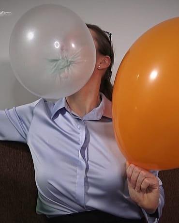 She starts contemplating if she can blow bubbles the size of the balloons sitting around her which are varying in size. Madalynn starts messing with the Balloons lamenting about the failure that is her office party.