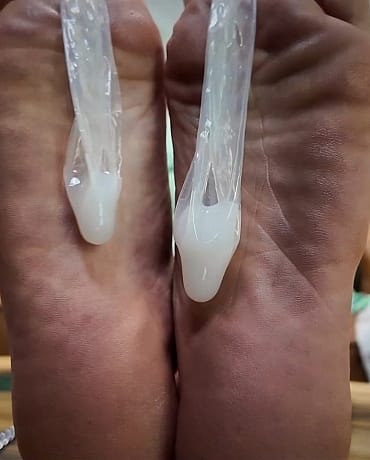 I put the condoms full of cum between my toes and they rest on my dirty soles, you nuzzle, kiss and worship them while you stroke your cock. Will you get to release?