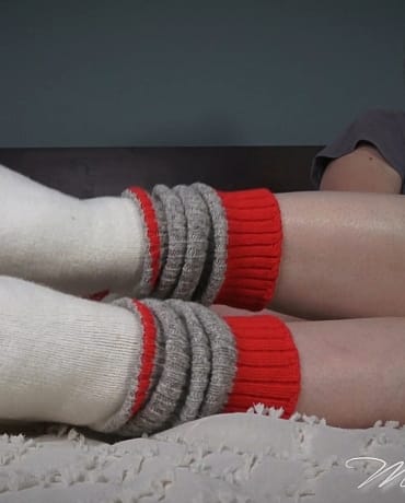 Laying on her bed and reading a book, Madalynn is in an oversized nightshirt and her wool socks. She’s relaxed and waiting for you to come home so she can playfully coax you into worshipping her socked feet and spending time together tonight.