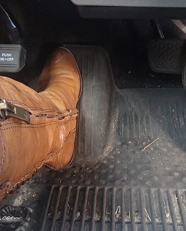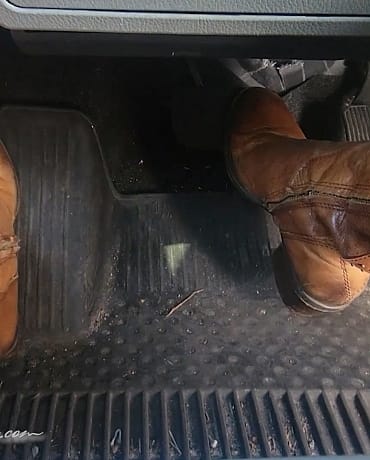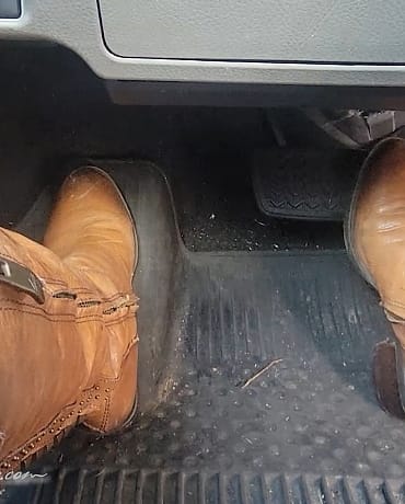 Madalynn and her friend AJ have finished all their farm chores and are resting their tired feet for a minute while they figure out what they're going to have for lunch. They head to the car in their farm boots and jeans and hop in. Madalynn starts up the car and AJ loves the purr. Madalynn continues to rev the engine while they make their final decision on lunch. Madalynn throws the car in drive and presses on the gas while giving you a nice view of her knee high, leather boots on the pedals. You can really hear her revving that engine and getting up to speed. Watching her feet as she expertly pumps the pedals while driving is truly a sight to behold.