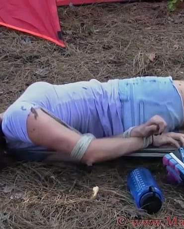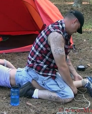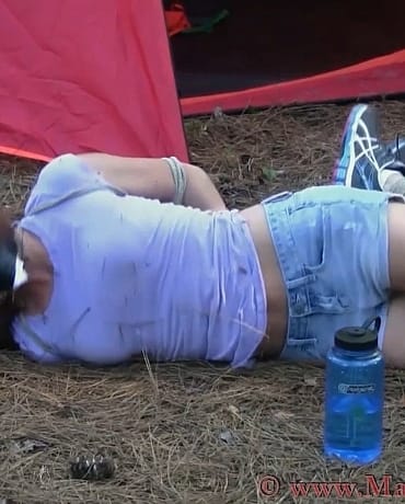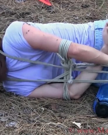 Just trying to enjoy some peace and quiet in the woods, Madalynn gets ambushed by some crazy redneck and wrangled and gagged  into submission!