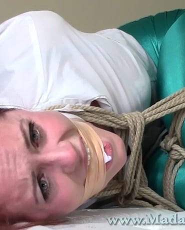 Madalynn is brought to an old abandoned house and thrown on a gross mattress, and then gets roped into a small ball tie and gagged. She's so tightly tied and the surface so soft she can hardly wiggle, let alone cry out for help!