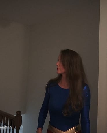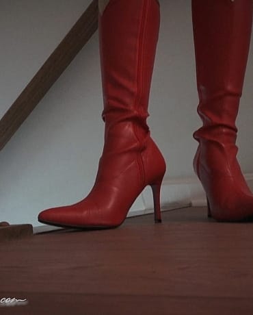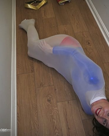 UltraGirl climbs up the stairs in her red leather knee high boots and as she creeps down the hallway, she gets overtaken. Golden power belt removed, boots thrown to the side, and her ankles and wrists tied.