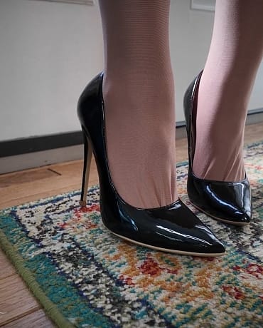 She drops her skirt and you love the look of her long thick tights clinging to her and those incredibly dirty socks! They make you throb!
