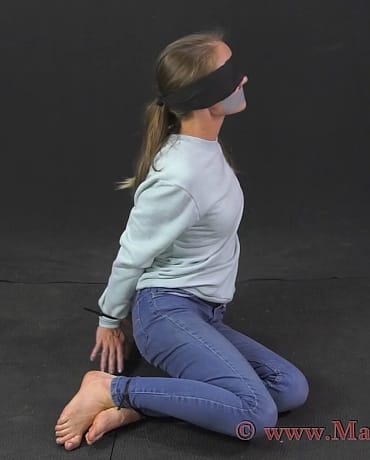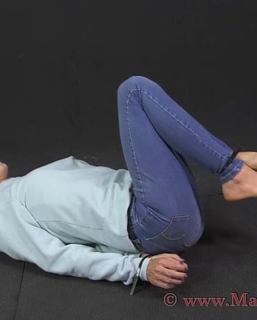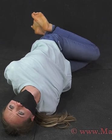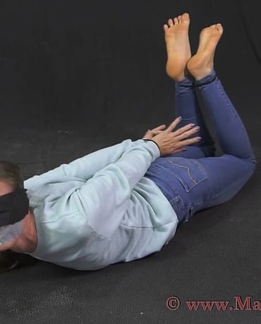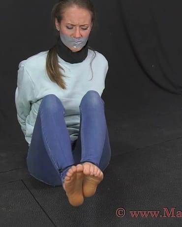 Ziptied, blindfolded at first, gagged and left to struggle.Gradually more zipties are added till I'm nicely hogtied and then my big toes get zipped together. Rolling around on the floor, my captor pulls out a feather and starts tickling my bound and bare feet!!!